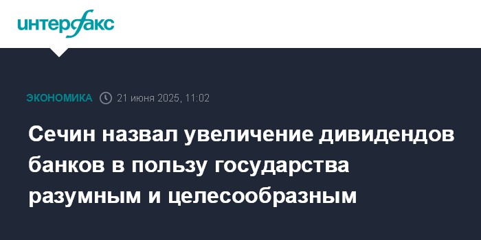 Сечин назвал увеличение дивидендов банков в пользу государства разумным и целесообразным