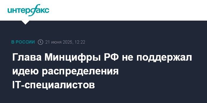 Москва. 21 июня. INTERFAX.RU - Глава Минцифры России Максут Шадаев не поддержал предложение о распределении получивших бесплатное образование IТ-специалистов.