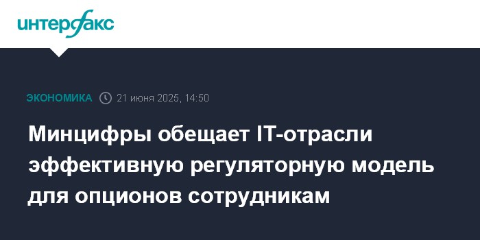 Москва. 21 июня. INTERFAX.RU - Минцифры РФ планирует разработать эффективную регуляторную модель предоставления опционов сотрудникам IT-компаний, которая бы исключала дополнительную налоговую нагрузку, сообщил глава ведомства Максут Шадаев на IT-завтраке в рамках ПМЭФ-2025.