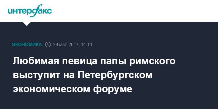 Любимая певица папы римского выступит на Петербургском экономическом форуме