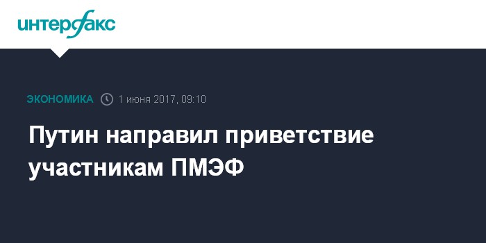 Москва. 1 июня. INTERFAX.RU - Президент России Владимир Путин направил приветствие участникам, организаторам и гостям XXI Петербургского международного экономического форума, который состоится под девизом "В поисках нового баланса в глобальной экономике", сообщает пресс-служба главы государства.
