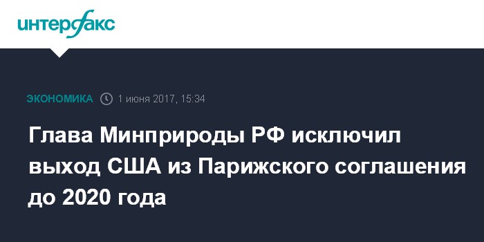 Москва. 1 июня. INTERFAX.RU - Процедура выхода из Парижского климатического соглашения прописана, его возможно осуществить лишь после 2020 года, заявил глава Минприроды Сергей Донской, комментируя возможный выход США.