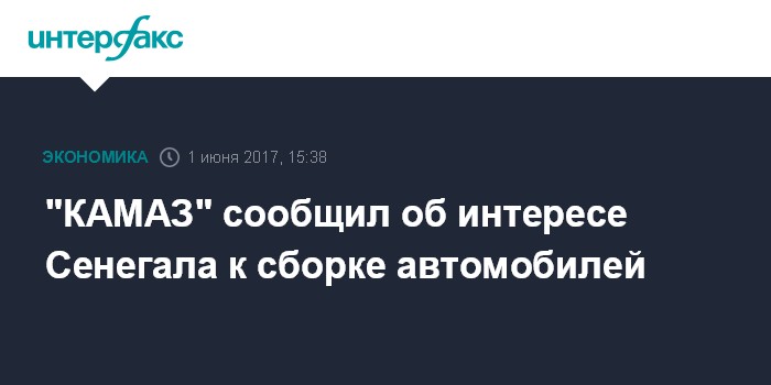 Москва. 1 июня. INTERFAX.RU - "КАМАЗ" договорилось о поставке партии из 400 автомобилей в Сенегал, заявил журналистам гендиректор компании Сергей Когогин в ходе ПМЭФ-2017.