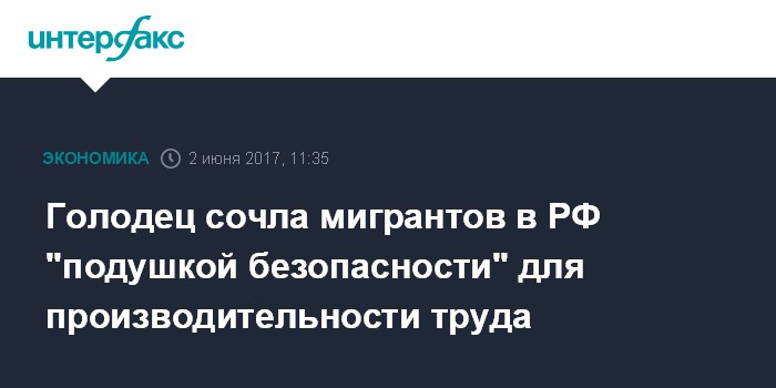 "Те перспективы, которые мы видим в росте производительности труда, мы можем прогнозировать довольно смело, поскольку есть такая "подушка безопасности" в виде демографии и в виде большого числа мигрантов, работающих на российском рынке - сегодня их число достигает почти 6 млн человек", - заявила Голодец в ходе дискуссии на Петербургском международном экономическом форме в пятницу.