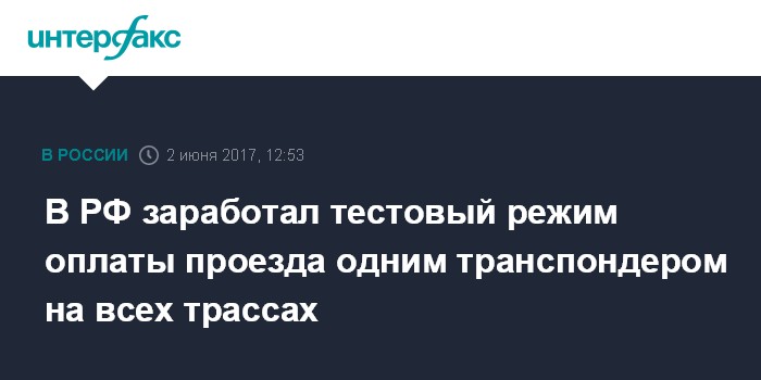 Москва. 2 июня. INTERFAX.RU - Тестовый режим оплаты проезда по всем платным магистралям одним транспондером заработал в России.