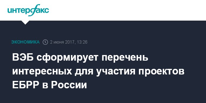 ВЭБ сформирует перечень интересных для участия проектов ЕБРР в России