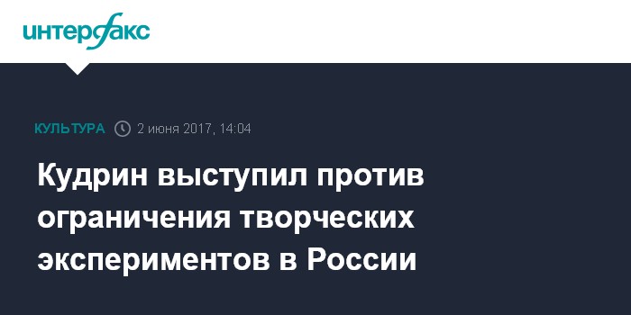 "В России в последнее время, особенно в культуре и музейном деле, стали происходить неприятные события, когда ограничивают или кто-то протестует против показа каких-то спектаклей", - сказал Кудрин на Петербургском международном экономическом форуме. По его словам, "если мы хотим стать современными, нужно экспериментировать".