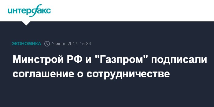 Минстрой РФ и "Газпром" подписали соглашение о сотрудничестве