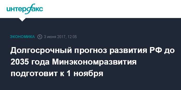 Долгосрочный прогноз развития РФ до 2035 года Минэкономразвития подготовит к 1 ноября