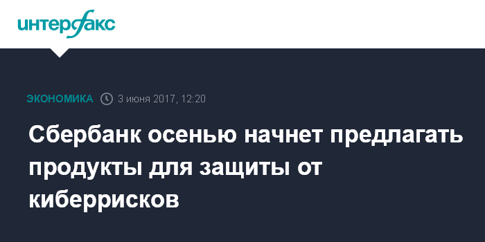 Москва. 3 июня. INTERFAX.RU - Сбербанк осенью начнет предлагать клиентам продукты, связанные с защитой от киберрисков, сообщил журналистам зампред правления банка Станислав Кузнецов в кулуарах ПМЭФ-2017.