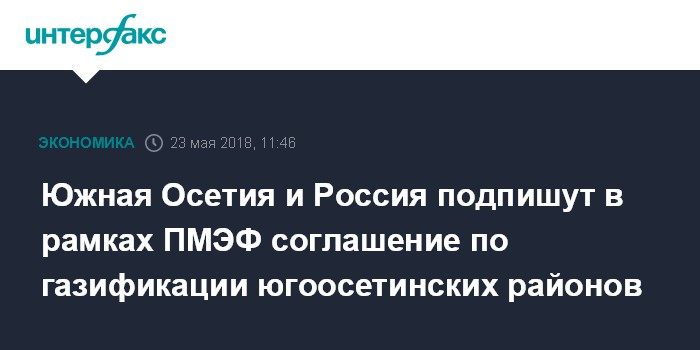 Москва. 23 мая. INTERFAX.RU - Правительства России и Южной Осетии в рамках Петербургского международного экономического форума подпишут соглашение об условиях купли-продажи акций и дальнейшей деятельности открытого акционерного общества "Газпром - Южная Осетия". Об этом сообщает в среду пресс-служба президента республики.