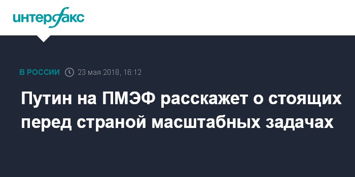 Путин на ПМЭФ расскажет о стоящих перед страной масштабных задачах