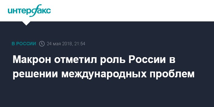 Москва. 24 мая. INTERFAX.RU - Президент Франции Эмманюэль Макрон заявил, что Париж признает, что Россия играет важную роль в решении многих международных проблем, в том числе на Ближнем Востоке, и готов учитывать "красные линии", которые провела Москва.