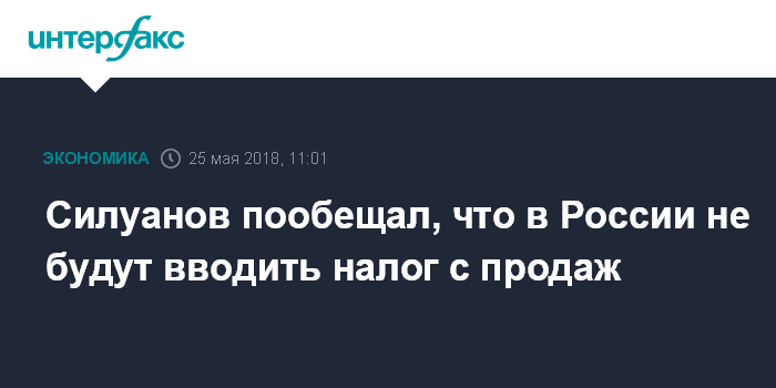 "Нет", - ответил Силуанов на вопрос главы бюджетного комитета Госдумы Андрея Макарова, будет ли налог с продаж.