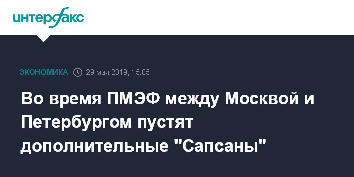 Москва. 29 мая. INTERFAX.RU - Между Москвой и Санкт-Петербургом в дни проведения Петербургского международного экономического форума увеличится количество скоростных поездов "Сапсан", сообщает в среду РЖД.