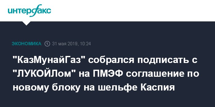 Москва. 31 мая. INTERFAX.RU - "КазМунайГайз" (КМГ) и "ЛУКОЙЛ" на следующей неделе планируют подписать еще одного соглашению по блоку на шельфе Каспия.