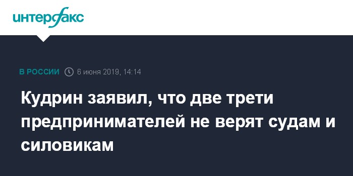 "До двух третей предпринимателей не верят ни судам, ни нашим правоохранителям", - сказал Кудрин.