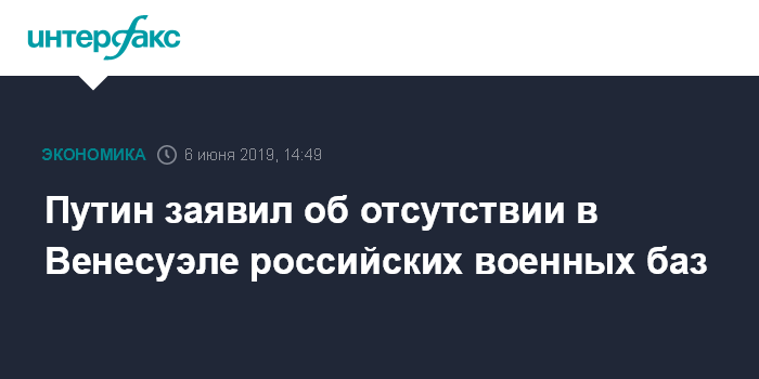 Москва. 6 июня. INTERFAX.RU - Россия не создает специально какие-либо военные базы в Венесуэле, заявил президент Владимир Путин на встрече с руководителями информагентств на полях ПМЭФ.