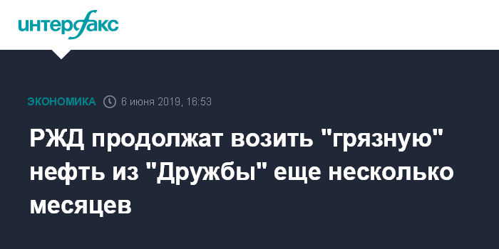 Москва. 6 июня. INTERFAX.RU - ОАО "РЖД" еще несколько месяцев будет вывозить загрязненную нефть из нефтепровода "Дружба". Об этом в кулуарах ПМЭФ заявил замгендиректора компании Алексей Шило.