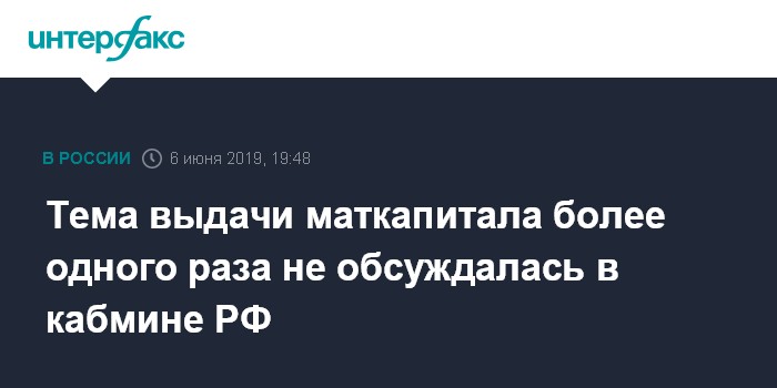 Тема выдачи маткапитала более одного раза не обсуждалась в кабмине РФ