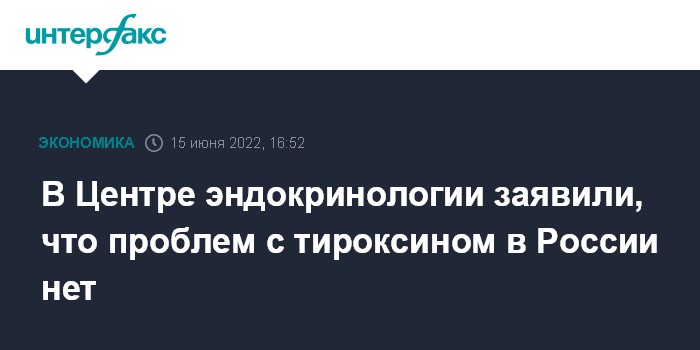 Москва. 15 июня. INTERFAX.RU - В настоящее время нет опасений, что российские пациенты не будут обеспечены лекарственными препаратами для терапии щитовидной железы, сообщила директор ФГБУ "Национальный медицинский исследовательский центр эндокринологии" Минздрава РФ Наталья Мокрышева.