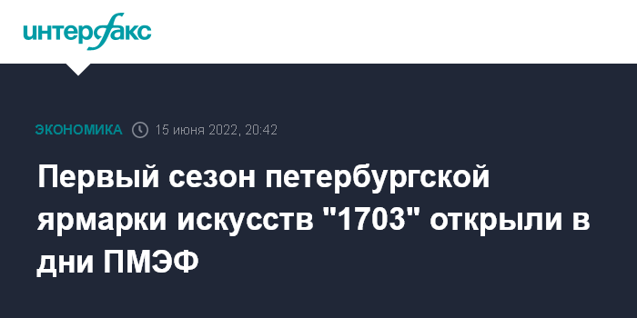 Санкт-Петербургская ярмарка искусства "1703" включена в официальную культурную программу ПМЭФ-2022. Ярмарка будет открыта до 19 июня.