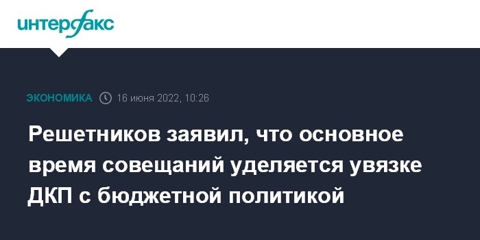 Решетников заявил, что основное время совещаний уделяется увязке ДКП с бюджетной политикой