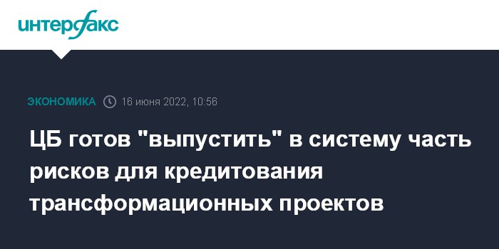 ЦБ готов "выпустить" в систему часть рисков для кредитования трансформационных проектов