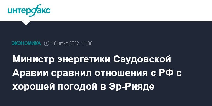Министр энергетики Саудовской Аравии сравнил отношения с РФ с хорошей погодой в Эр-Рияде