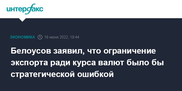 Белоусов заявил, что ограничение экспорта ради курса валют было бы стратегической ошибкой