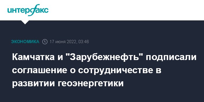Москва. 17 июня. INTERFAX.RU - Правительство Камчатского края и АО "Зарубежнефть" подписали соглашение о сотрудничестве в области развития геотермальной энергетики, сообщает в пятницу пресс-служба краевого правительства.