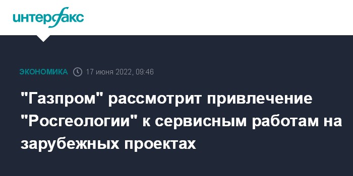 "Газпром" рассмотрит привлечение "Росгеологии" к сервисным работам на зарубежных проектах