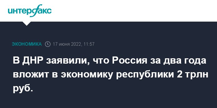 Москва. 17 июня. INTERFAX.RU - Россия в течение ближайших двух лет вложит более 2 триллионов рублей в экономику Донецкой народной республики, заявил премьер ДНР Виталий Хоценко.
