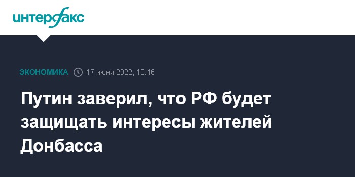 Москва. 17 июня. INTERFAX.RU - Россия будет защищать интересы народа Донбасса, но с уважением отнесется к любому его выбору по поводу своего будущего, заявил президент РФ Владимир Путин.