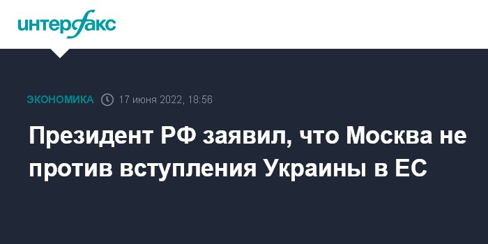 Президент РФ заявил, что Москва не против вступления Украины в ЕС
