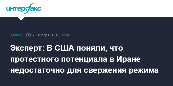 А что касается США, то там скорее всего поняли, что протестный потенциал не обладает достаточной силой, чтобы свергнуть политический режим в Иране. Мне трудно понять, зачем США наносить удары по Ирану, когда протесты уже подавлены. Хотя, конечно, действия Трампа предсказать сложно.