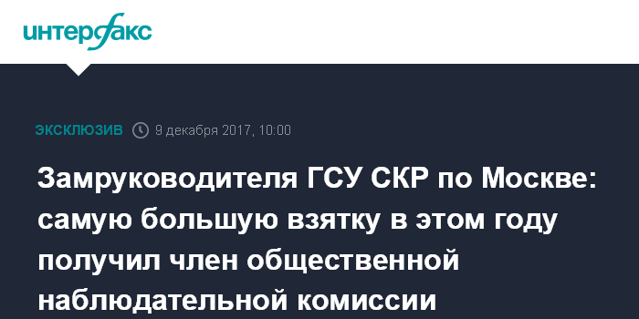 Замруководителя ГСУ СКР по Москве: самую большую взятку в этом году получил член общественной наблюдательной комиссии