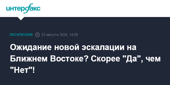 Ожидание новой эскалации на Ближнем Востоке? Скорее "Да", чем "Нет"!