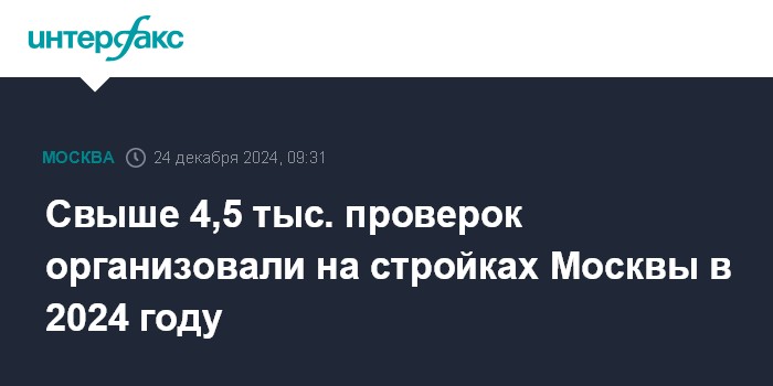 Свыше 4,5 тыс. проверок организовали на стройках Москвы в 2024 году