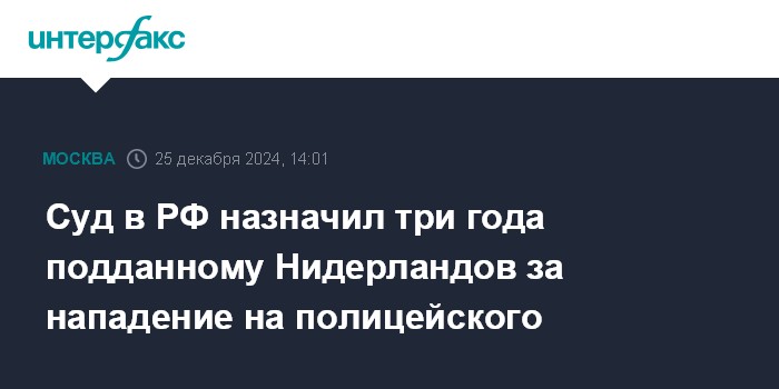 Суд в РФ назначил три года подданному Нидерландов за нападение на полицейского