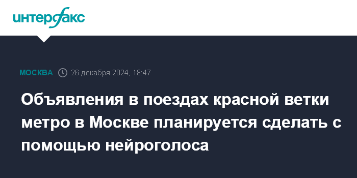 Объявления в поездах красной ветки метро в Москве планируется сделать с помощью нейроголоса