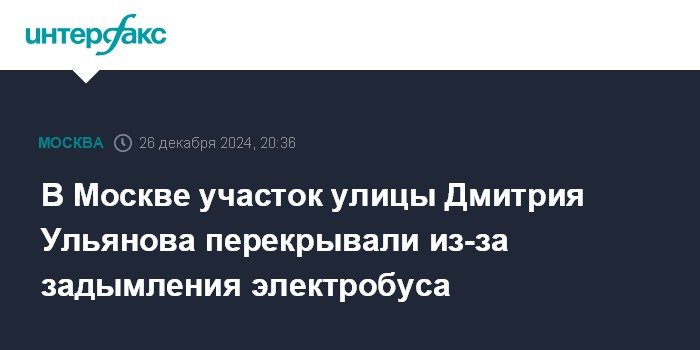 В Москве участок улицы Дмитрия Ульянова перекрывали из-за задымления электробуса