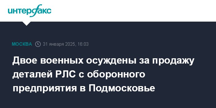 Двое военных осуждены за продажу деталей РЛС с оборонного предприятия в Подмосковье