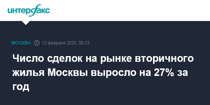 Москва. 12 февраля. INTERFAX.RU - Количество сделок на столичном рынке вторичного жилья в минувшем январе увеличилось на 27% за год, сообщает пресс-служба управления Росреестра по Москве.