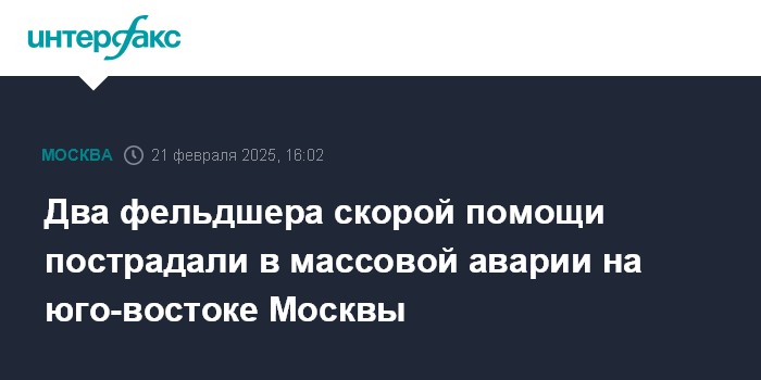 Москва. 21 февраля. INTERFAX.RU - В результате столкновения нескольких автомобилей на юго-востоке Москвы пострадали два фельдшера скорой медицинской помощи, чей транспорт перевернулся, сообщили в пресс-службе столичной Госавтоинспекции.