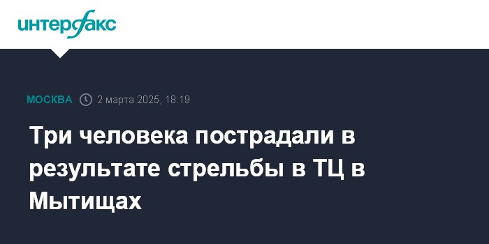 Москва. 2 марта. INTERFAX.RU - Три человека пострадали в результате стрельбы в одном из торговых центров города Мытищи, сообщили в воскресенье в пресс-службе Главного управления МВД России по Московской области.