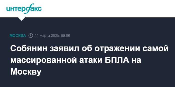Москва. 11 марта. INTERFAX.RU - Мэр Москвы Сергей Собянин сообщил, что минувшей ночью была отбита самая массированная атака вражеских БПЛА на столицу.