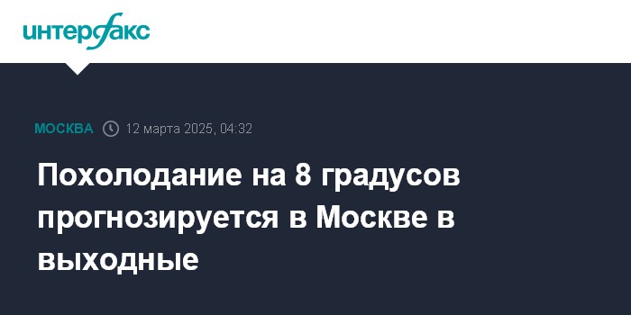 Москва. 12 марта. INTERFAX.RU - Температура в Москве в выходные понизится на 7-8 градусов, ночью ожидается до минус 6, сообщил "Интерфаксу" научный руководитель Гидрометцентра России Роман Вильфанд.