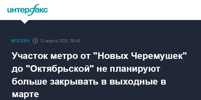 Участок метро от "Новых Черемушек" до "Октябрьской" не планируют больше закрывать в выходные в марте