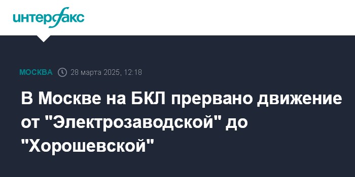В Москве на БКЛ прервано движение от "Электрозаводской" до "Хорошевской"